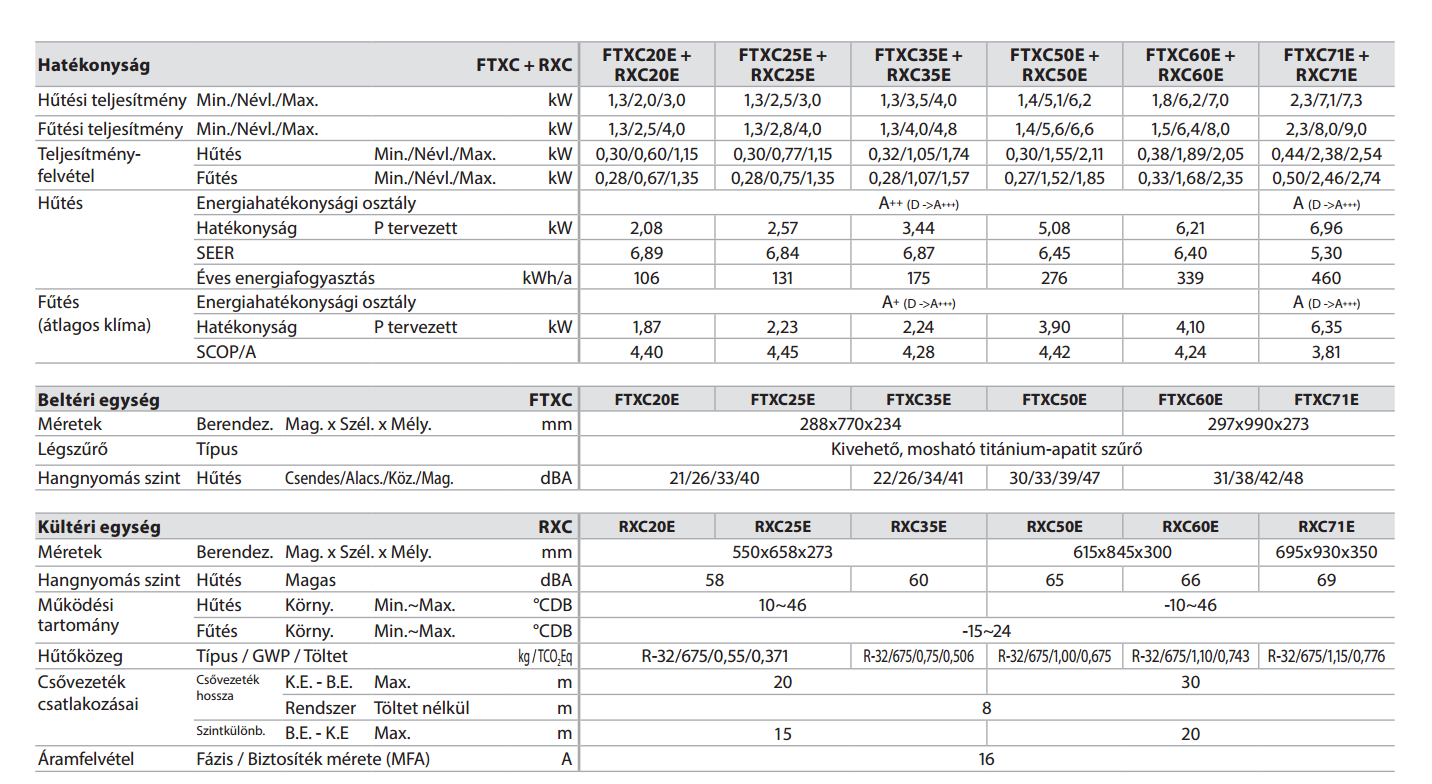 • Hűtő teljesítmény : 2,5 kW