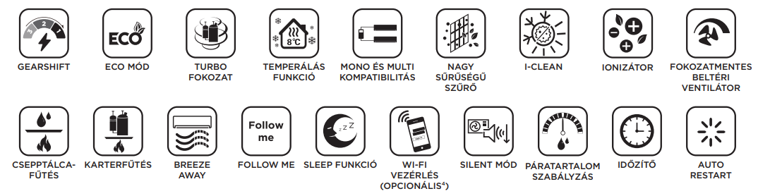 A Midea MFA2-12HRFN8-SP Konzol Inverteres Split klíma fontos tulajdonságai: