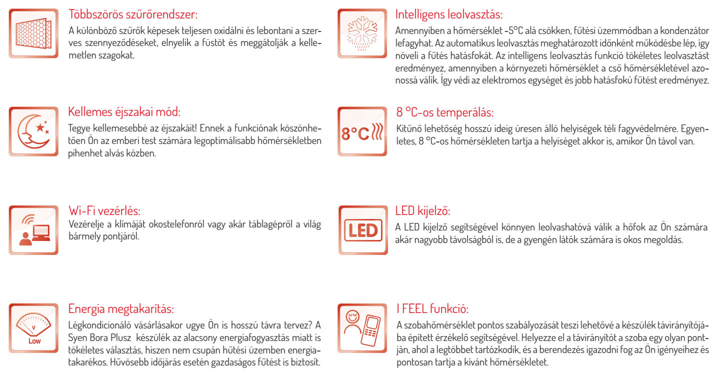 A Syen Bora Plus SOH24BO-E32DA4C Inverteres Split klíma fontos tulajdonságai: